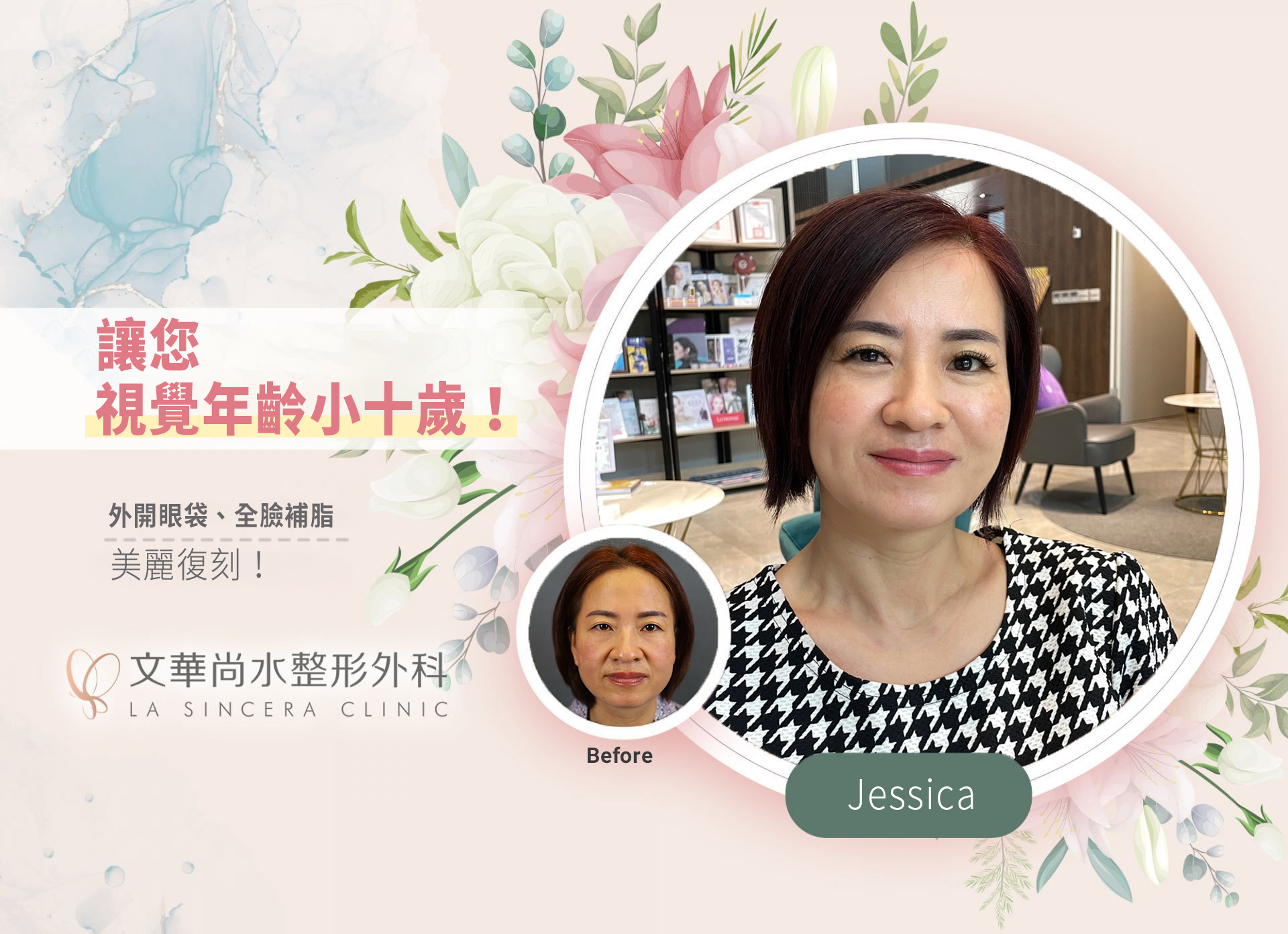 現在的Jessica化妝時再也不需要煩惱如何遮掉眼袋,拍照後也不必再想方設法將照片修圖,整個人更加散發自信光彩!Jessica非常感謝「文華尚水整形外科診所」的協助,從最初諮詢,到術後回診,蔡醫師及團隊都保持高度專業與親切,對Jessica來說,選擇「文華尚水整形外科診所」是她一生最正確的決定之一。同時她也很感謝自己,因為當初有勇敢踏出第一步,鼓起勇氣找尋蔡醫師的幫助,如今才得以追尋到更棒的自己!