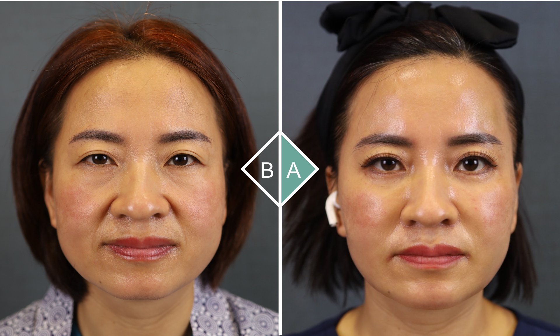 大約術後1個月後,Jessica基本上已完全復原,對於Jessica來說,「外開眼袋+全臉補脂」手術除了讓她成功擺脫眼袋外,眼下細紋皺紋也改善很多,整體臉蛋看起來更加澎潤有形,宛如膠原蛋白重新增生一般看起來年輕十歲。