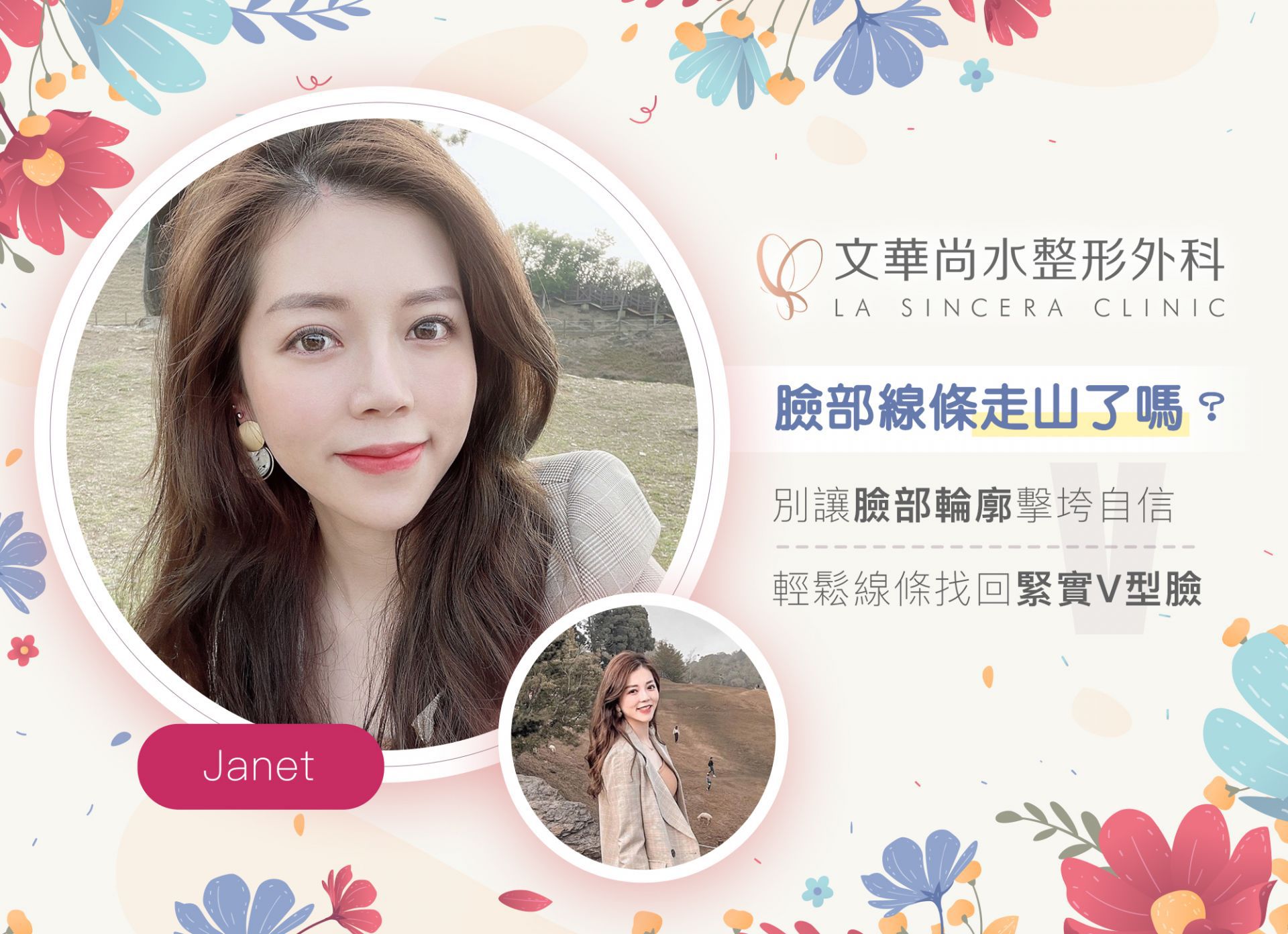 現在Janet每天照鏡子的時候都很開心、雀躍,不但臉部拉提緊實,看起來也更加年輕有光彩。Janet不要求回到過去,只希望可以凍齡在現在這個美麗的時刻,並且希望每一次看到自己都會更愛自己一點。