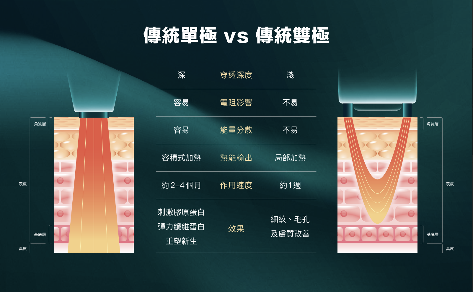 Density 無雙電波採用專利 α 科技,單次擊發同時提供單極與雙極能量,針對真皮淺層(乳突層、網狀層)及深層加熱,促進膠原蛋白重組新生,使肌膚恢復緊緻與彈性。